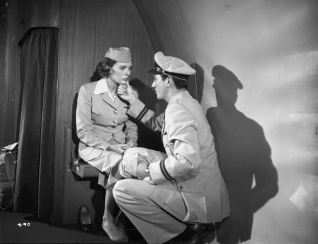 We meet the rest of Flight 420: Captain Sullivan (Robert Stack), navigator Lenny (Wally Brown) and Hobie the second officer (William Campbell). Dan and Lenny are old hands while Hobie is the kid and Sullivan has reached a critical but little-discussed point in his career where he's losing his nerve, sensing that his luck might have run out – like Dan's did in South America. Filling out the crew is Miss Spalding (Doe Avedon), the sole flight attendant.