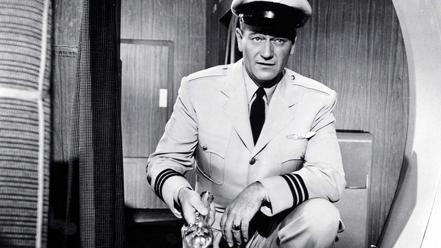 While Dimitri Tiomkin's justifiably famous score plays we watch a man in a pilot's uniform inspecting an airplane parked on the tarmac of an airport. And because the man is John Wayne we know we're looking at the movie's hero, all the more since the tune he's whistling is the melody of Tiomkin's theme.