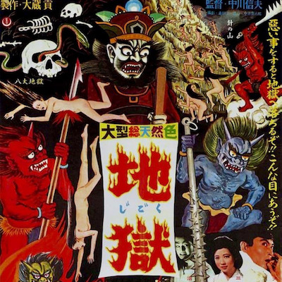 More specifically a Japanese hell, as imagined in Nobuo Nakagawa's cult classic Jigoku, which was given the Criterion treatment nearly twenty years ago, putting a once hard-to-find film in a context that includes Japanese new wave films like Woman in the Dunes and The Pornographers and the later explosion of "J-Horror" that includes pictures as different as Battle Royale, Ringu and Tetsuo: The Iron Man.