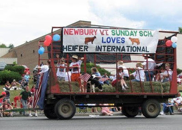 Now here's the thing: Obviously, as it had never been intended to be part of any parade route, my road had no official signs up on it, and in fact, unlike the flat even plain on which Wells River's Main Street is located on, the grade drops steeply and very dramatically down to the community field. And yet, clinging on for dear life as the floats plunged down the incline, all the cute little gradeschoolers and tiara-clutching beauty queens somehow managed to survive.